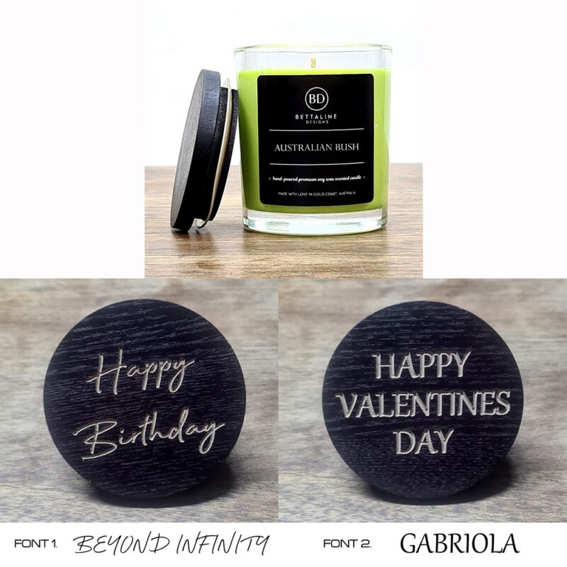 Personalise your candle by having the lid beautifully engraved with your own text. Choose Font 1 or Font 2