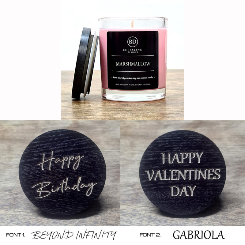 Personalise your candle by having the lid beautifully engraved with your own text. Choose Font 1 or Font 2